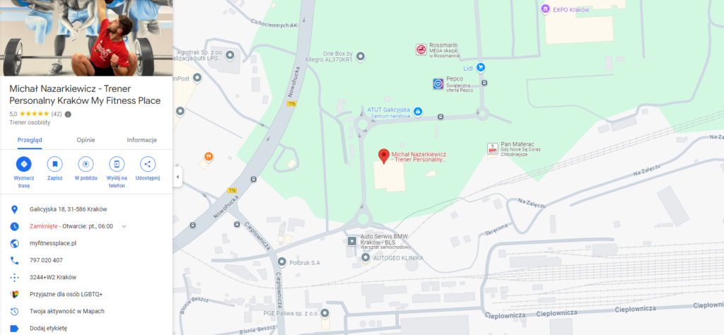 Od lutego 2024 roku zajmowałem się pozycjonowaniem wizytówki Google trenera personalnego Michała z Krakowa.